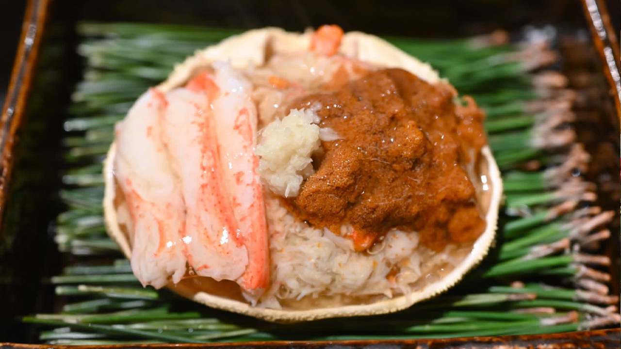 「香箱ガニあんかけ」は、甲羅にたっぷりつまった身が贅沢で、生姜の香りが広がります。