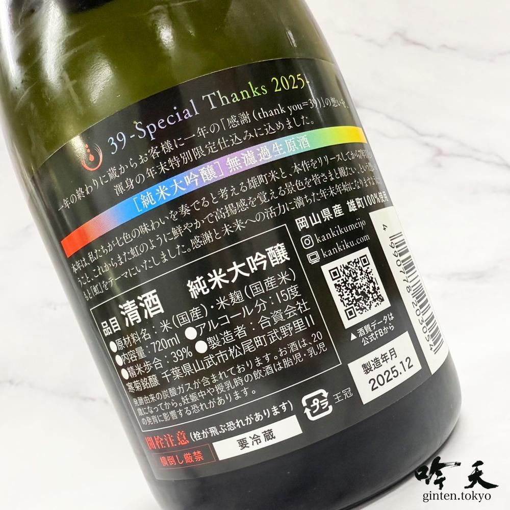 寒菊 39 Special Thanks 2025 無濾過生原酒 (720ml)
